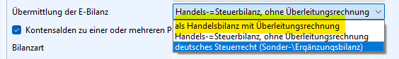 Wenn Sie die Handelsbilanz ohne Überleitungsrechnung übergeben möchten, wählen Sie bitte eine andere Position für Ihre Konten aus.