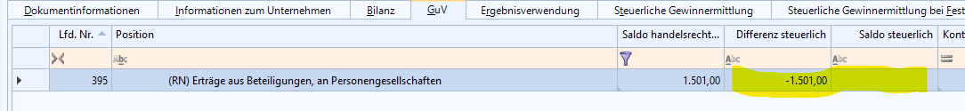 Die steuerliche Differenz wird beim Abändern der Übermittlung automatisch gesetzt und der Saldo steht auf 0,00.