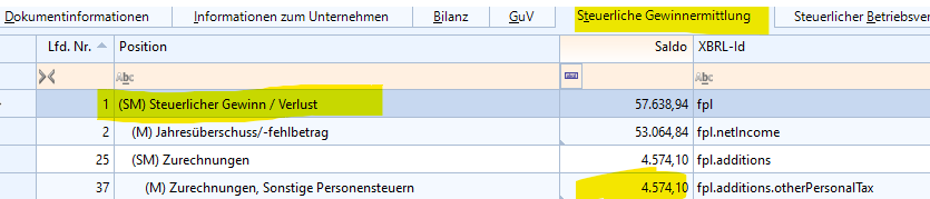 Anschließend sollte Ihr Steuerlicher Gewinn / Verlust den korrekten Saldo haben.