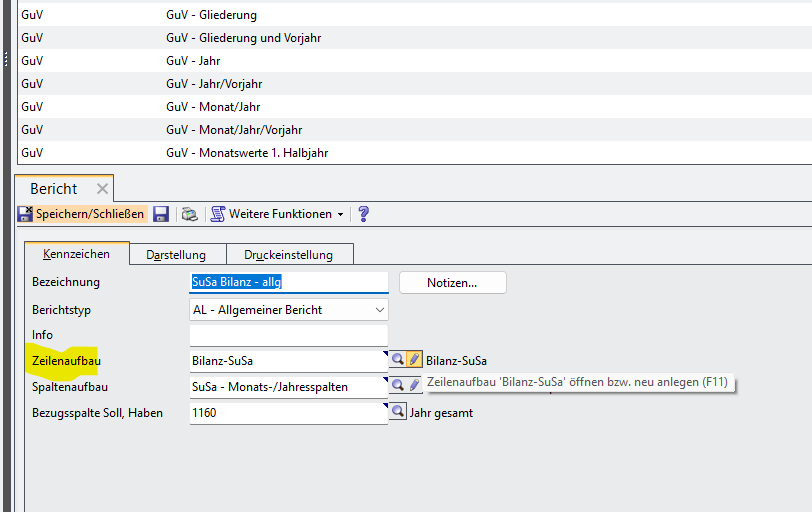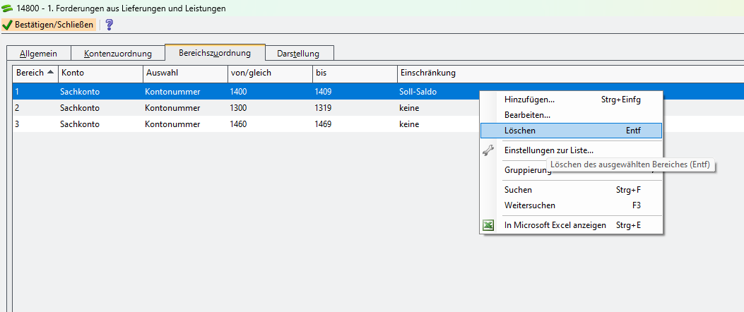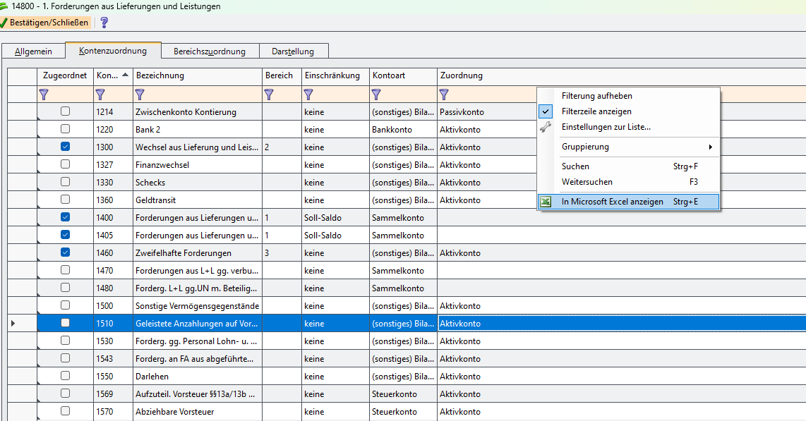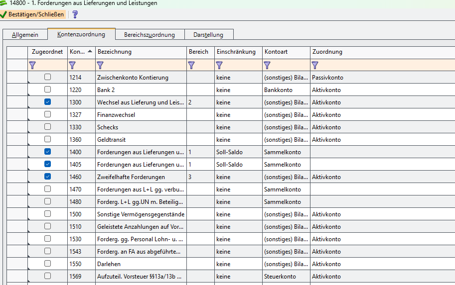 Kontenzuordnung in Berichten ändern