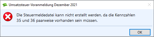 Wenn Sie die Umsatzsteuervoranmeldung ausgeben möchten, kann es sein, dass Sie z. B. folgende Meldung erhalten:
