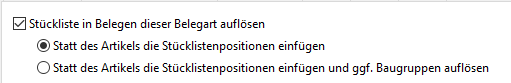 In der Belegart können Sie die Einstellung zum Auflösen der Stückliste trotzdem vornehmen (Stammdaten/weitere Stammdaten/Belegart Verkauf - Registerkarte 'Stückliste').