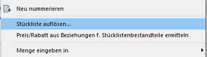 Alternativ können Sie bei der Belegerfassung über das Kontextmenü die Stückliste auflösen.