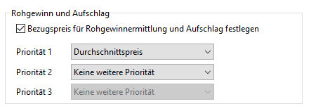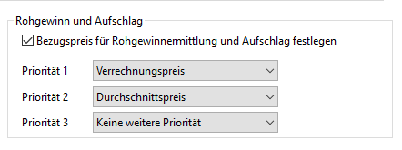 In den Stammdaten der Artikelart können verschiedene Prioritäten für die Berechnung des Rohgewinns hinterlegt werden.
